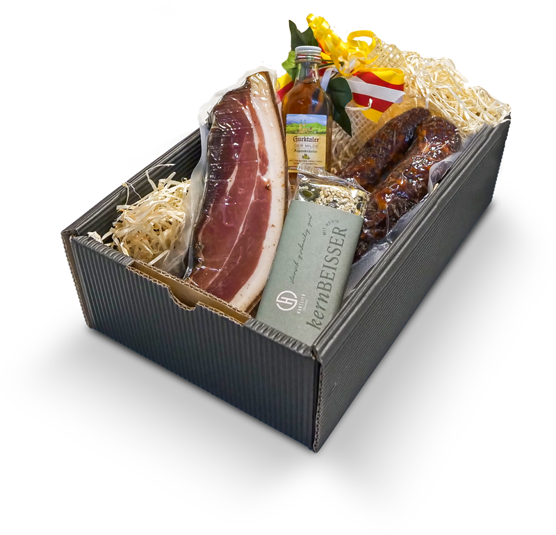 Die individuell gestalteten Geschenkkörbe und -boxen sind in verschiedenen Größen sowie mit unterschiedlicher Befüllung erhältlich und können in unserem Geschäft bestellt und abgeholt werden. Auch die Geschenkkisterl und schön verpackten Brettljausen sind beliebte Mitbringsel.